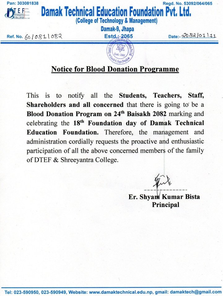 Damak Technical Education Foundation fosters a culture of acquiring technical skills, learning and knowledge sharing encouraging students to develop their character and soft skills essential for serving humanity. Through active participation in discussions on core values of different branches of engineering and technical courses, students are prepared to enter the world of success and fulfillment. While teacher provides a pathway of learning, it's ultimately up to the students to seize opportunities at their disposal.